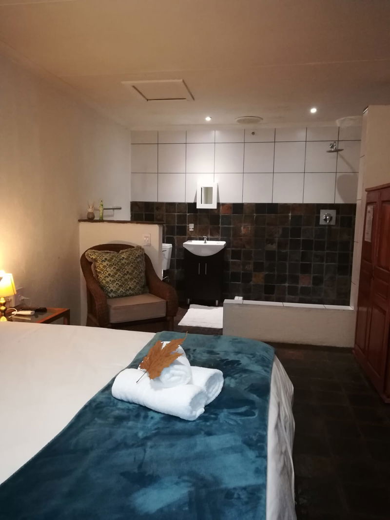- An open plan en-suite bathroom with shower, wash basin and toilet;